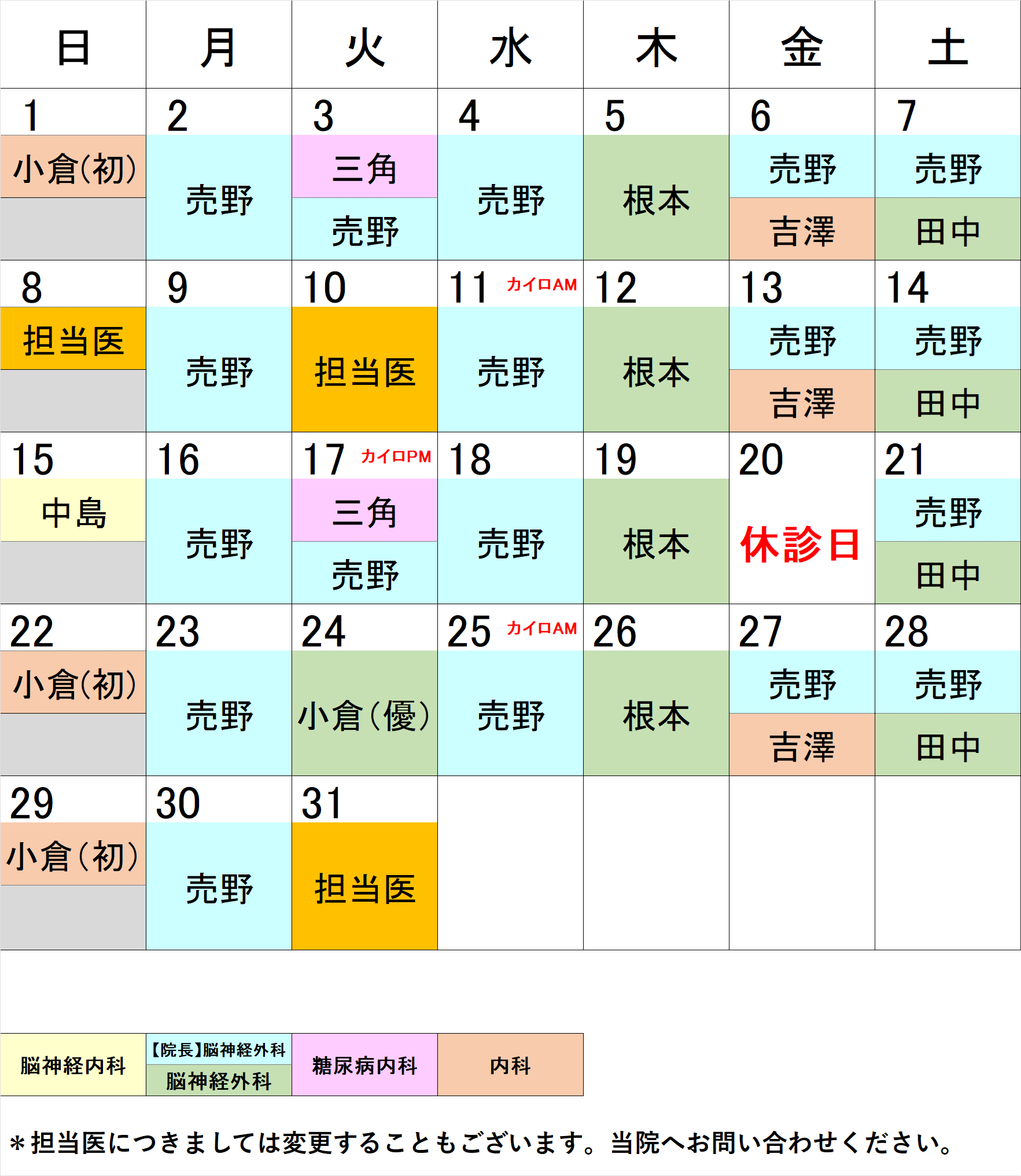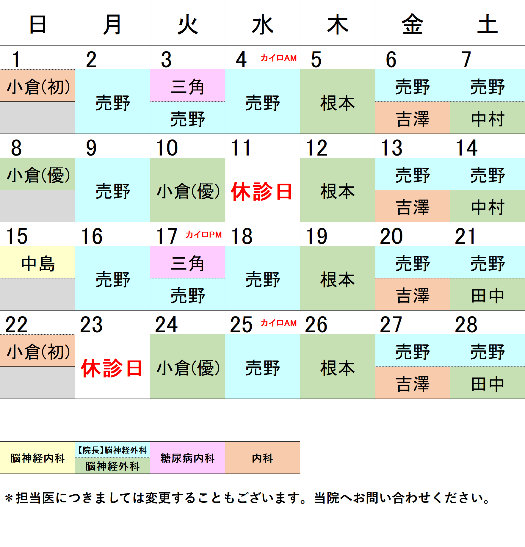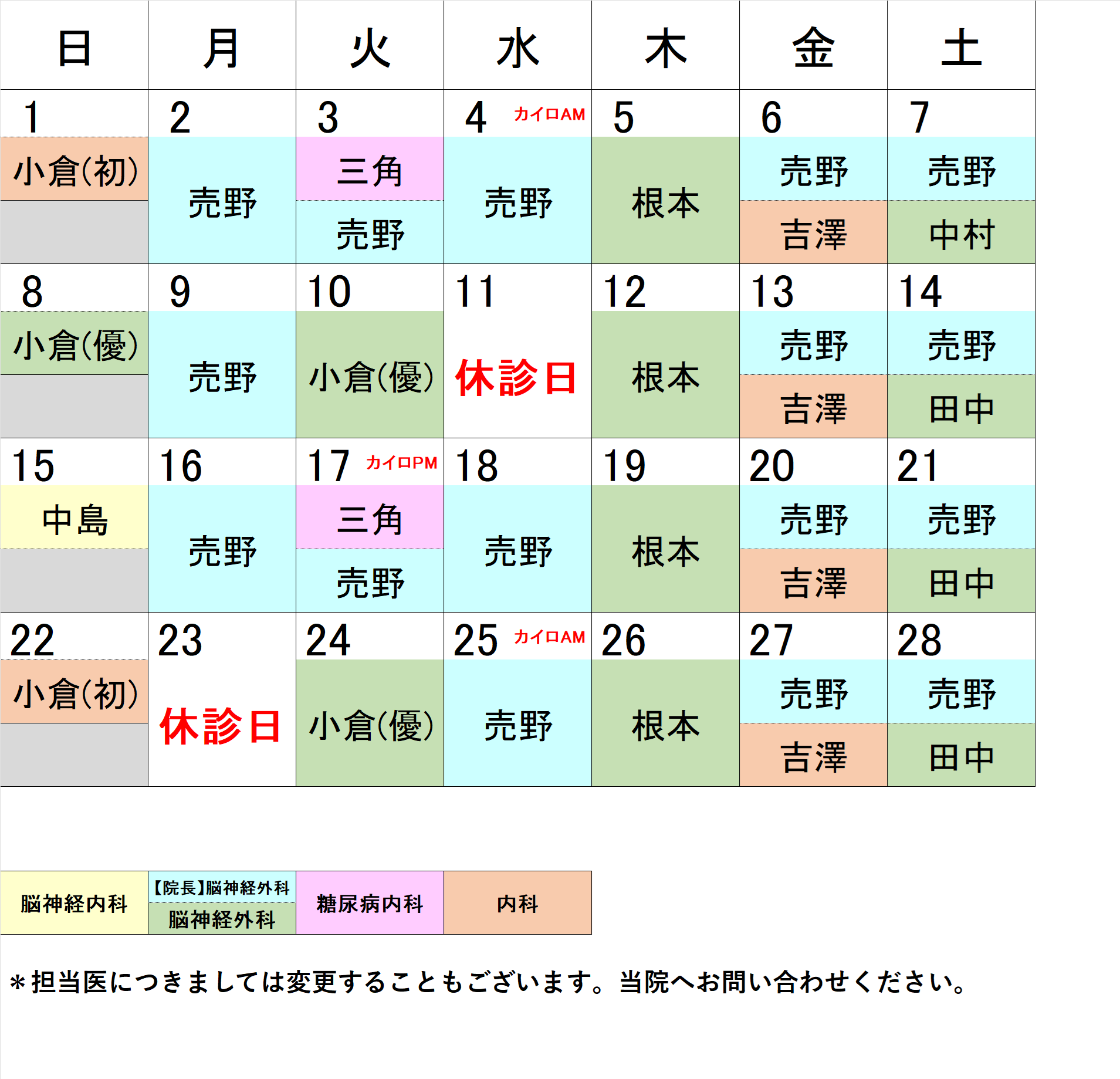 | 【神経内科】(完全予約制) 9:00~12:00 | ─ | ─ | ─ | ─ | ─ | ─ | ●第3 |