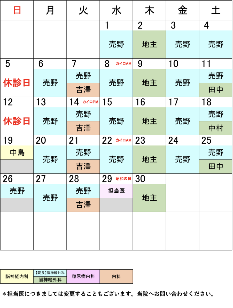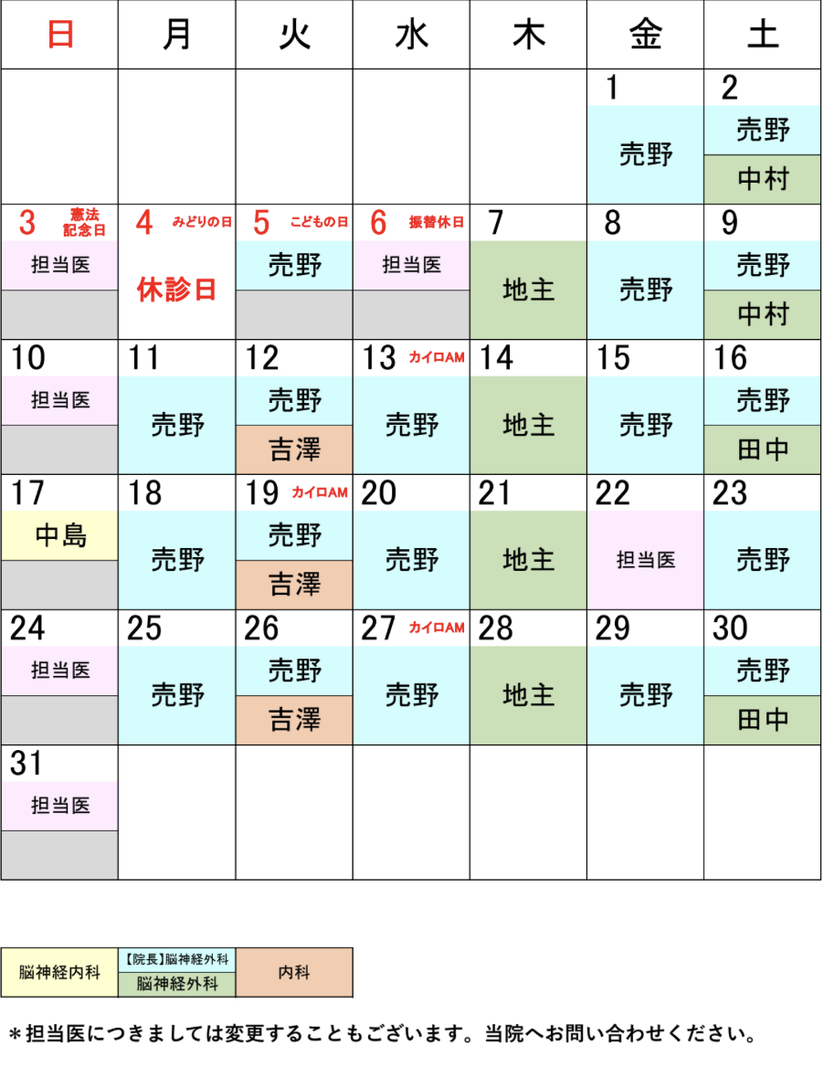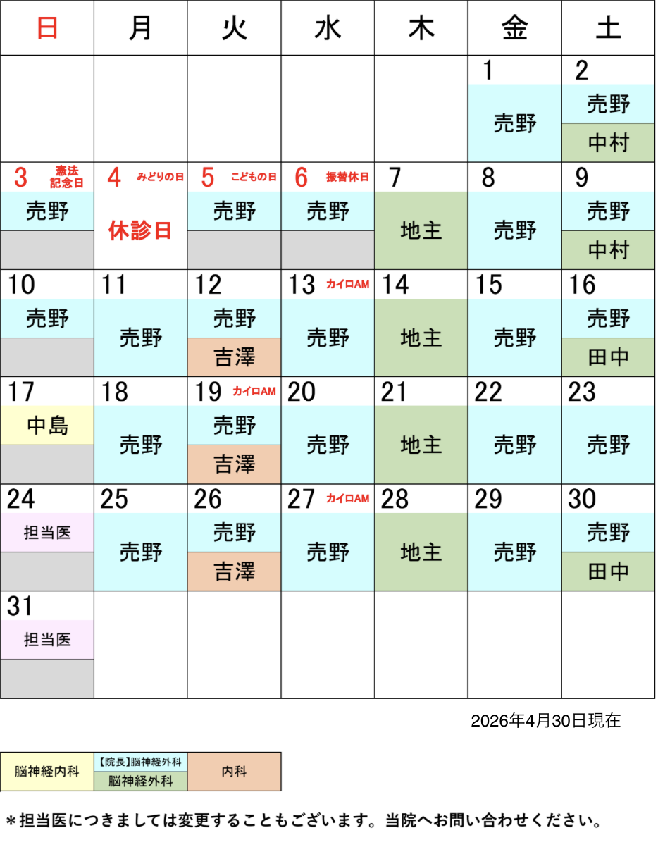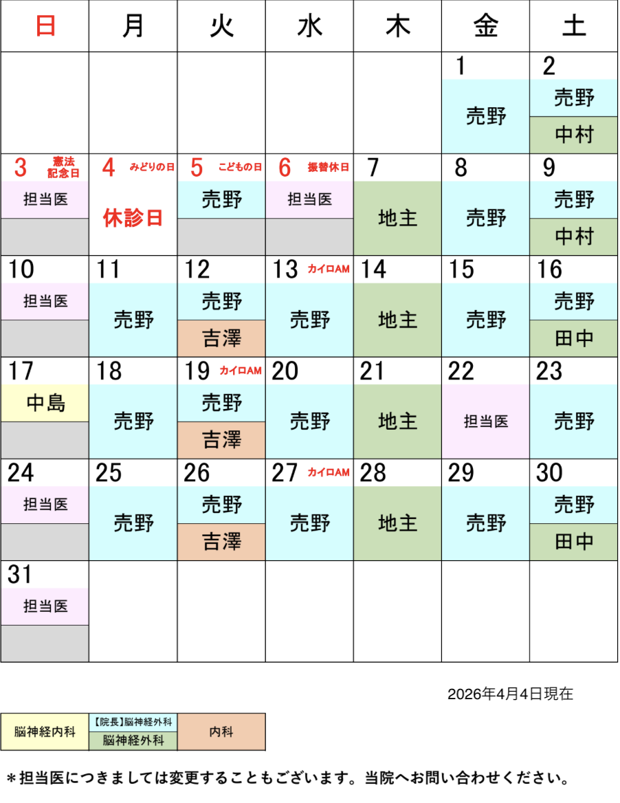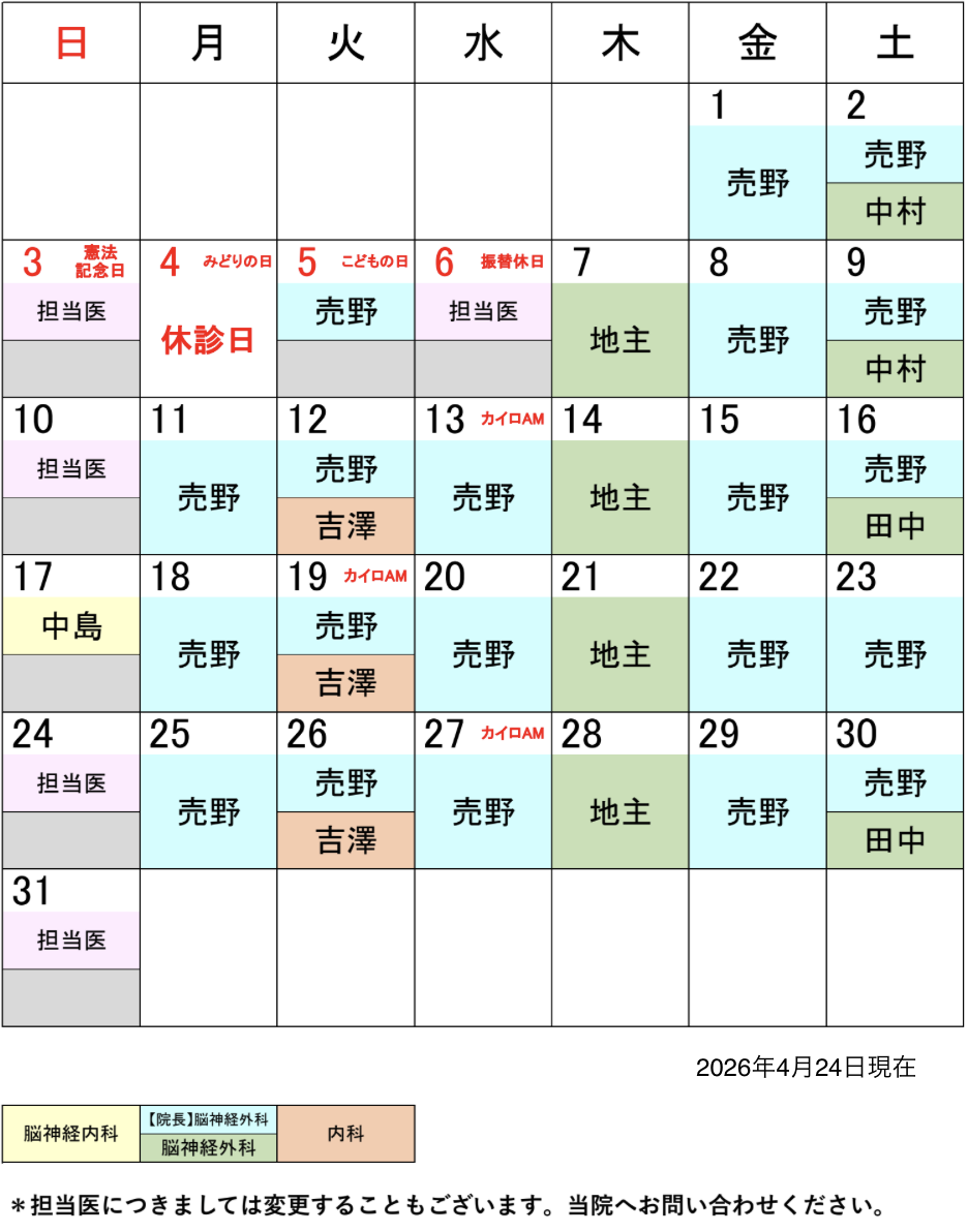 2026年5月担当医