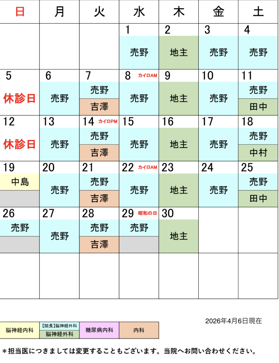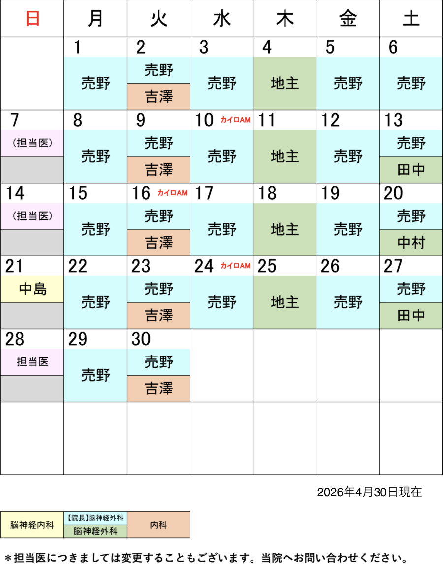 2026年4月担当医